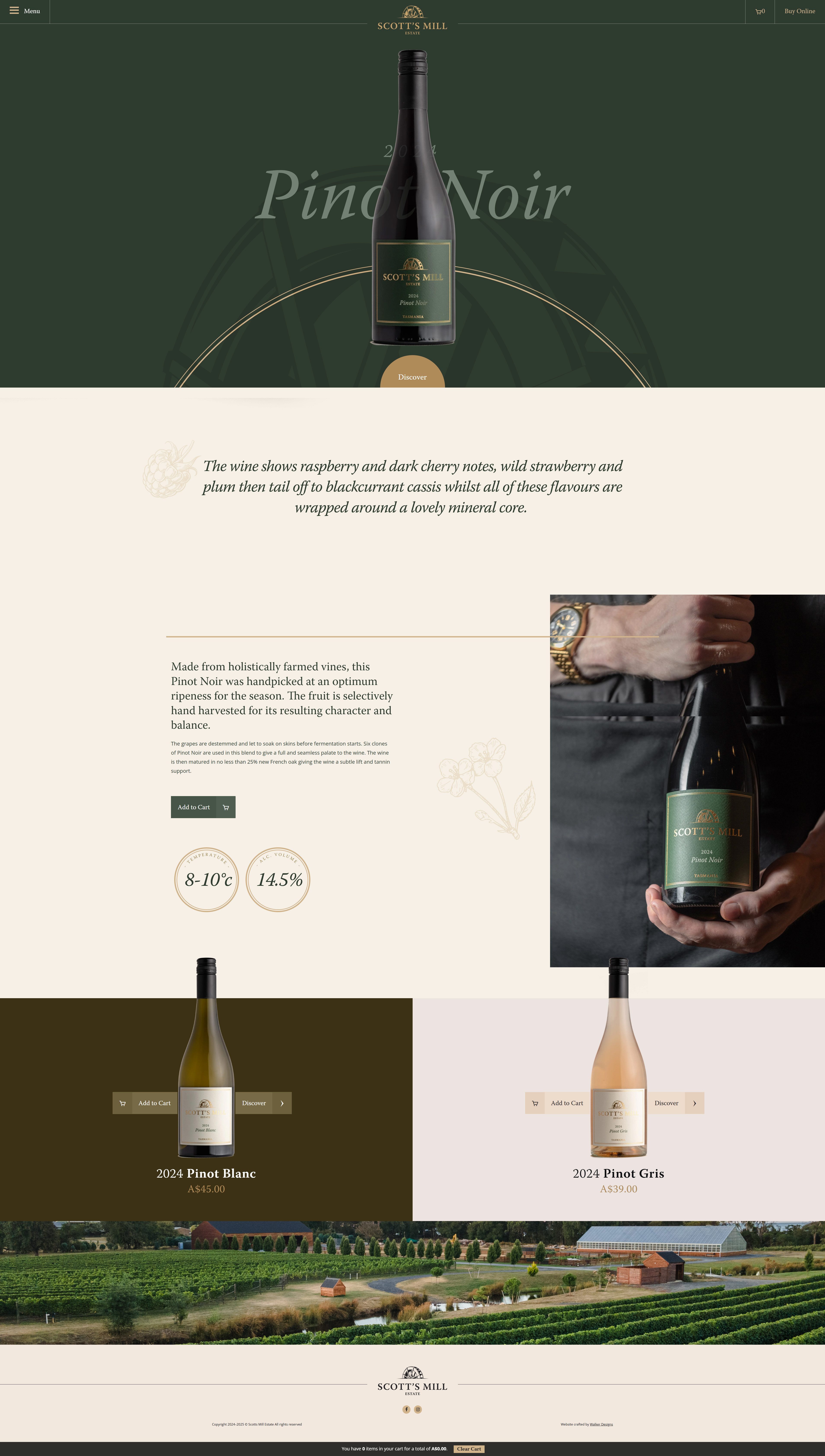 Our strategy for the Scott's Mill Estate Winery website focused on creating a sophisticated, user-friendly, and highly functional platform that celebrated the art of winemaking and streamlined customer interactions.